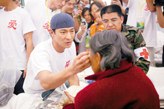 本報(bào)成都專(zhuān)電 繼前日赴都江堰看望受災(zāi)群眾與救援官兵后,昨日一大早,劉德華、鄭秀文、容祖兒、張國(guó)立、馮小剛、陳道明、蔣雯麗等眾多明星,又先后趕赴重災(zāi)區(qū)的漢旺、綿竹等地,看望當(dāng)?shù)氐氖転?zāi)群眾和醫(yī)護(hù)工作者。之后抵達(dá)成都的葛優(yōu)、吳小莉也一同前往。