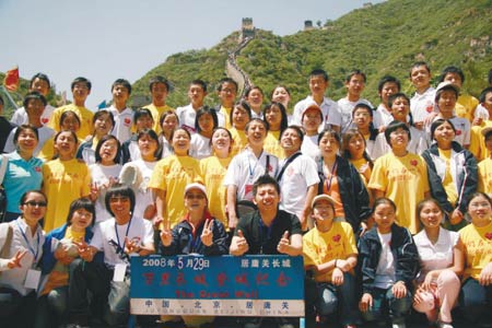 圖文:羽·泉與北川學(xué)生登長城 高喊“中國加油”