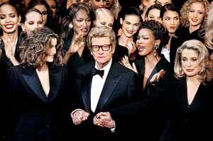 圣洛朗1936年生于北非國家阿爾及利亞,21歲時任迪奧時裝公司的首席設(shè)計師。1962年圣洛朗在巴黎建立自己的公司。他的設(shè)計風格極其前衛(wèi),開創(chuàng)了女性著裝的新潮流,其中,模特不戴胸罩展示薄透時裝正是他開創(chuàng)的先鋒。