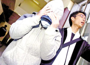 郭鎮(zhèn)瑋為躲避鏡頭穿得相當嚴實。