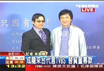 而成龍為TVBS關(guān)懷臺(tái)灣基金會(huì)拍的公益廣告,也在今天記者會(huì)上首次播映,這次成龍?zhí)氐爻榭諄砼_(tái)2天,要為貧困學(xué)童募集學(xué)雜費(fèi)跟營養(yǎng)午餐費(fèi),雖然在機(jī)場遭到抗議,但顯然沒有影響到他的好心情。
