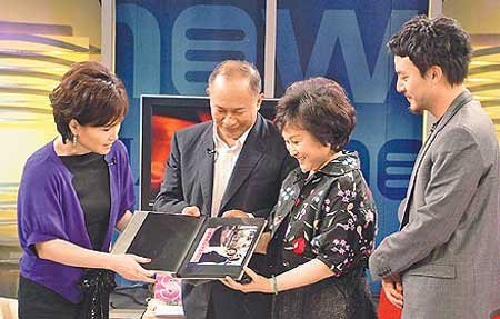 沈春華(左起)昨送吳宇森與牛春龍夫婦一本集合世界各景點(diǎn)的相簿。