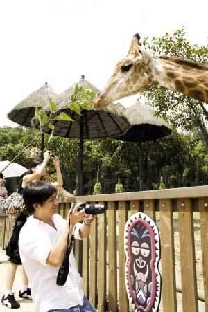 本月12日,黃磊以別克凱越旅行車的代言人和攝影發(fā)燒友的身份來到香江野生動物園,參加由《華夏地理》雜志主辦的全球攝影大賽外拍活動。一進(jìn)香江野生動物園的大門,黃磊就逗起掛在樹上的兩只鷯哥,熱情地和它們打著招呼,可是鷯哥毫無反應(yīng),在數(shù)次逗弄沒有得到回應(yīng)之后,黃磊“悻悻”離去。來到長頸鹿園,黃磊顯得異常忙碌,他給長頸鹿拍起了寫真照———近景的,遠(yuǎn)景的,單個的,一對的,吃東西的,不吃東西的……為了更好地給長頸鹿取景,這位文藝帥哥還當(dāng)眾跪在地上。