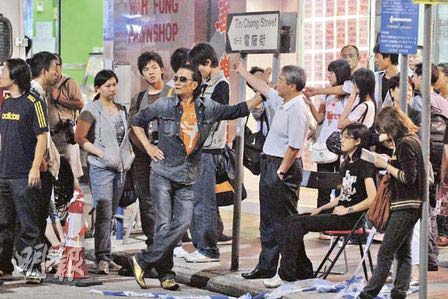 據(jù)香港《明報(bào)》報(bào)道,電影《證人》前晚拍攝槍戰(zhàn)戲后,飾演警察的霆鋒受傷,他坐在警車上接受救護(hù)人員處理傷口,右手包扎紗布,額頭亦有貼上膠布。期間,身穿牛仔恤衫的四哥現(xiàn)身探班,他的有型打扮吸引大家視線,見他一手撐著路牌擺pose,一邊喝汽水一邊吸煙,當(dāng)他發(fā)現(xiàn)記者拍照時(shí)即笑說:“開槍打死你喲!”