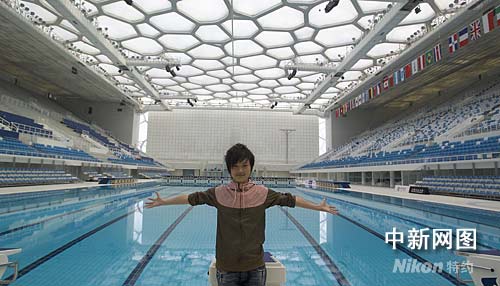結(jié)束了專家訪談的重要環(huán)節(jié)之后,李宇春終于可以放松一下,與這個大水泡組成的新奇場館好好地親密接觸。她一會兒在泳池邊細細觀察水下的攝影裝置,一會兒跑到觀眾席體驗觀賽的新鮮感覺,此時的她顯現(xiàn)出好奇、天真的本色一面!八⒎健睍r尚的設(shè)計、舒適的環(huán)境令李宇春流連忘返,直呼這個場館“太棒了”。