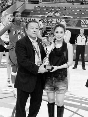 繼商業(yè)廣告在不少電視臺(tái)恢復(fù)播出之后,“不雅照”事件女主角阿嬌(鐘欣桐)昨天現(xiàn)身海寧,為“2008FIBA鉆石杯洲際女子籃球賽”總決賽澳大利亞隊(duì)對(duì)美國(guó)隊(duì)的比賽助興。現(xiàn)場(chǎng),她除了主持開球禮,還被委任為FIBA宣傳大使。