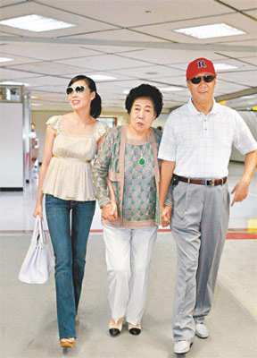 據(jù)臺灣媒體報道,昨天下午3時許,郭臺銘頭戴棒球帽出現(xiàn)在臺灣桃園機場,曾馨瑩則攙扶郭母跟隨在后。被媒體發(fā)現(xiàn)后,郭董還應媒體請求,一起牽著母親走一段路任記者拍照。稍后郭董先往前走,媒體仍對郭母及曾馨瑩猛拍,郭母逗趣說:“不要一直拍我這個老太婆,你們是要幫我找男朋友嗎?要拍就拍新娘子嘛!