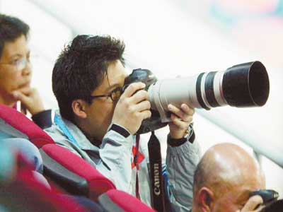 霍震霆甚至還專門走到了坐在自己前一排座椅的何振梁身邊,何老和霍震霆握手的同時,還附在耳邊和霍震霆說了兩句,不知是否與晶晶的奪金有關。而在轉身看到本報記者后,霍震霆也給了記者一個幸福的微笑,鑒于之前有到香港專訪霍震霆的經(jīng)歷,霍震霆也簡單回答了記者的提問,卻絕對謹慎和有策略,“看到中國選手奪金,我當然非常開心了,郭晶晶是我很喜歡的跳水運動員!被粽瘀不忘補充,“只要是中國選手奪冠,我都會非常開心!敝劣谑欠裼^看郭晶晶的個人比賽,霍震霆笑言“有時間當然會來!