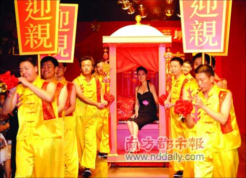 迎親隊伍魚貫而出,轎夫吹著嗩吶喜慶登場,四人花轎中坐著的“新娘”竟然是佘詩曼!前晚,無線當(dāng)家花旦佘詩曼現(xiàn)身廣州,為某床上用品新推的婚慶產(chǎn)品做代言。正在休假的阿佘顯得特別滋潤,問及幾時將自己嫁出,她自言正忙于幫弟弟籌備婚禮,而自己則要等另一半出現(xiàn)再做打算。對于多年的“緋聞男友”陳浩民早前在節(jié)目中稱“曾有一段深刻的戀愛至今未能忘情”,佘詩曼就言簡義賅地回應(yīng)道:“如果是曾經(jīng)的(愛情)話應(yīng)該就是曾經(jīng)的了!