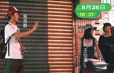 吳克群和提著大包小包的助理上車,之后又接了公司同事,三人一同來到八德路四段一間錄音室。十分鐘后,戴著白色棒球帽、個(gè)頭嬌小的王心凌,忽然出現(xiàn)在錄音室門口,悄悄進(jìn)門。在錄音室待到晚上六點(diǎn)半,吳克群和王心凌先后走出來,在門口先和同事道別,接著兩人和助理一同坐上吳克群的休旅車,驅(qū)車前往慶城街的一家餐廳。