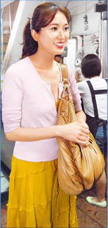 林志玲昨到林森北路買麻油雞,談情事笑容甜蜜。