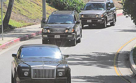 貝克漢也愛搞大陣仗,最近他去學校接孩子,竟然開著價值約1741萬元新臺幣的勞斯萊斯,后頭還跟了2車的保鏢,陣容浩大?磥硭e家搬來洛杉磯1年多,已漸漸融入當地的奢華作風。