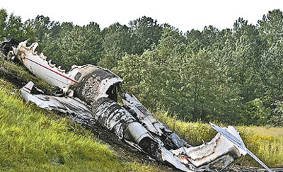 崔維斯·巴克搭乘的小型噴射機失事,機身全毀。