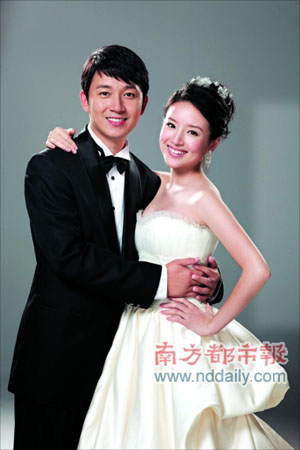 董潔和潘粵明一中一西的兩款結婚照,都是喜氣洋洋。