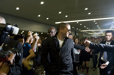 這次米勒上海之行吸引了近30家媒體到機(jī)場(chǎng)接機(jī),在接機(jī)過程中,媒體意外接到了郭富城和王力宏。郭富城為了避免媒體追問他和熊黛林的緋聞,提前要求上海演出方安排走貴賓通道。這讓郭富城意外避過了媒體的“追訪”。而王力宏則完全是在狀況之外,他一走出出境口,就被一擁而上的媒體驚到。當(dāng)時(shí)王力宏整個(gè)人愣了一下,不自覺地往后退,隨即低著頭避開鏡頭。讓王力宏更加納悶的是有媒體記者問他是否看過《越獄》,不知情的王力宏并沒有回答。