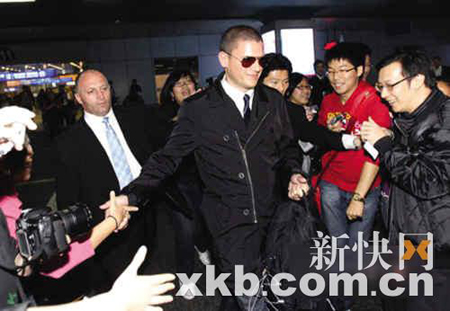 在首都機場T2航站樓,米勒的黑人保鏢率先出現(xiàn),帶領一批人馬直奔停車樓,并對粉絲們言簡意賅地交待說:“不要握手,不要拉扯和擁擠!辈涣希讕涍@次跟《越獄》中一樣,調虎離山,從另一邊的電梯口出現(xiàn)了。媒體和粉絲見狀立即“追捕”過去,將米勒團團圍住,相機快門聲不停地響起,粉絲爭相喊“邁克”,并伴著十分奔放的“Iloveyou”一路將其送上了保姆車。夜色中,粉絲們自駕車,跟著米勒的保姆車在北京的機場高速上“狂飆”。