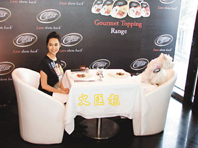 中新網(wǎng)10月22日電 據(jù)香港文匯報(bào)報(bào)道,朱茵昨日出席“西莎主人及愛犬星級(jí)盛宴”,和白威狗一起共進(jìn)午餐,又親自炮制狗狗美食,一向愛狗的朱茵更早于前日就和這頭白威狗一起做訪問(wèn)及拍照。