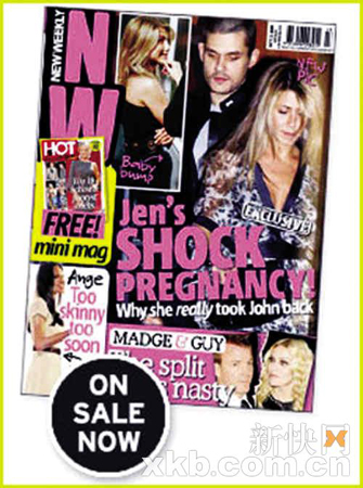 最新出版的澳大利亞媒體《NewWeekly》爆料:詹妮弗·安妮斯頓之所以吃回頭草,同前男友約翰·梅耶再續(xù)前緣,是因?yàn)樗呀?jīng)懷了對(duì)方的孩子!該期雜志的封面是上周四兩人一起離開日落塔酒吧時(shí)被拍到的照片。
