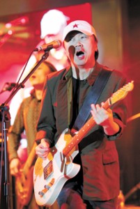 昨晚演出前,老崔應(yīng)邀做客“LOVERADIO搖滾唱談會(huì)”,頭上還是那頂標(biāo)志性的白色鴨舌帽,以至于在場(chǎng)有記者追問(wèn):這是否已經(jīng)成為上場(chǎng)表演的慣例?崔健解釋說(shuō),五角星加鴨舌帽的裝束是一種偶然,“我對(duì)表演服裝的唯一刻意就是不想太沒(méi)有個(gè)性,別的就沒(méi)想太多”。自言在上海演出已經(jīng)不是一次兩次的老崔,對(duì)這次表演還是格外看重,他說(shuō),因?yàn)槲枧_(tái)設(shè)在商業(yè)區(qū)的街心廣場(chǎng),直接面對(duì)的觀眾大部分都是普通老百姓,這是第一次,也是一大挑戰(zhàn)。也正因此,代表作《一無(wú)所有》理所當(dāng)然地成為了必唱曲。