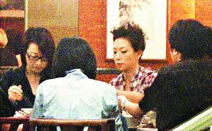 林憶蓮(右二)與工作人員用餐,表情嚴(yán)肅。