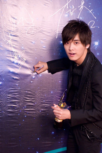 被譽(yù)為“國民校草”的李易峰,以超高人氣初涉歌壇,國內(nèi)首張概念EP《摩天輪》交出了首份亮眼的音樂成績單,在2008年底的首個(gè)樂壇頒獎典禮上便與臺灣人氣實(shí)力小天王蕭敬騰一并,將“最佳新人獎”收入囊中。當(dāng)被問拿最佳新人獎心情怎樣時(shí),陽光帥氣的大男孩心情大好的搞怪回答:上次這么緊張還是拿三好學(xué)生的時(shí)候。在拍照時(shí),李易峰不斷擺出吐舌、嘟嘴的可愛表情,惹得現(xiàn)場快門聲不斷。