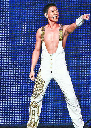 盼了6年,臺灣歌迷終于等到劉德華!昨晚他在臺北小巨蛋開唱,47歲的他像一條活龍,開場就露腹肌、在萬里長城的LED螢?zāi)磺把莩吨袊恕,氣勢磅礡。這位萬千粉絲心目中永遠的不老偶像,一開口就說:“我回來了,有沒有想我?真的有嗎?”挑動萬名觀眾的心。美中不足的是,他在香港演出時有被電流劈過的特技,臺北場卻因舞臺規(guī)格無法呈現(xiàn)。