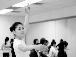 白晶在學(xué)校的練功房進行形體訓(xùn)練,打好進娛樂圈的基本功