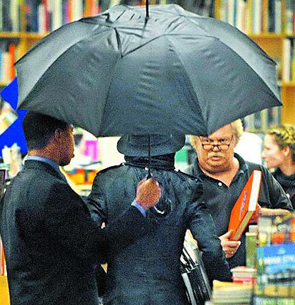臺(tái)灣媒體報(bào)道,當(dāng)日他全副武裝,用巨大口罩遮面,在書店內(nèi)還不忘讓保鏢為其撐傘,詭異行徑因店內(nèi)群眾紛紛駐足觀望。