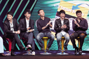 由康洪雷執(zhí)導、《士兵突擊》原班人馬打造的新劇《我的團長我的團》將于3月2日在江蘇衛(wèi)視進行全國首播。昨日,該劇在南京舉行首播式,康洪雷帶著段奕宏、邢佳棟、張國強、劉威葳等演員集體亮相。面對近百家媒體的追訪,康洪雷首次坦露了該劇拍攝時遭遇事故時的慘狀,還給大家揭秘道:“會看哭所有觀眾的,《我的團》全是英雄,最后跟日本人拼得只剩下兩個人了!闭f到動情處,現(xiàn)場男演員流下了眼淚。串場的魔術紅人劉謙,則表演了三個小魔術,輕松賺走20萬。