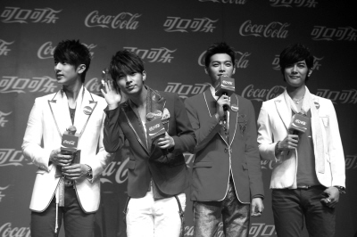 作為目前最受歡迎的青春偶像組合,“飛輪!4位帥哥成員吳尊、炎亞綸、汪東城和辰亦儒齊集上海,推出今年可口可樂全新廣告。由于早有“飛輪海”成員不和的傳聞,吳尊和“大哥”汪東城在發(fā)布會上更是“明爭暗斗”,但記者一提到前輩F4,四人均立刻不屑道,“他們只是機遇比較好”。