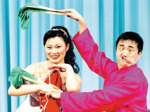 作為趙本山弟子中唯一一個從小學習二人轉的專業(yè)演員,閆光明不僅嗓子好、武功好,戲路也寬,在“首屆趙本山杯二人轉大獎賽”中曾獲表演銀獎。閆光明非常刻苦,雖然年齡不小了,但現在還是遼寧大學本山藝術學院民族藝術表演專業(yè)的大四學生。去年的全國大學生藝術節(jié)上,閆光明和妻子趙海燕以一段新編二人轉《梁山伯與祝英臺》獲得一等獎。能有今天的成績,閆光明自己也“沒想到”:“我生在二人轉世家,能有今天的成績說明這么多年的努力沒白費!彼膊煌兄x師傅趙本山,“師傅讓二人轉越來越紅火,我得繼續(xù)努力,把我熱愛的民間藝術發(fā)揚光大。”舞臺上擅長模仿趙本山的閆光明說,“我們對天津觀眾很熟悉,因為天津有劉老根大舞臺,我認識了很多天津朋友。這次來天津演出,希望大家一樣支持我!