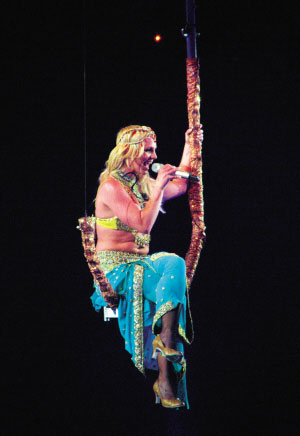 忙著展開復(fù)出巡演的布蘭妮,日前在美國舉行了第六場(chǎng)演唱會(huì)。整場(chǎng)演唱會(huì)宛如布蘭妮的變裝秀,從印度舞娘裝、性感女警裝、馬戲團(tuán)衣服到金屬內(nèi)衣,看得歌迷大呼過癮,而麥當(dāng)娜、娜塔莉·波特曼等明星也前來捧場(chǎng)。不過心態(tài)良好的小甜甜似乎開始享受生活,放棄減肥的計(jì)劃了,因?yàn)榘缙鹩《任枘锏乃亲由系馁樔獗┞稛o遺。記者張碩