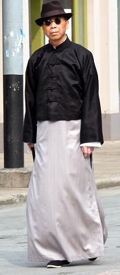 昨天《建國大業(yè)》的拍攝場地就在車墩影視基地的 “南京路”,既然拍的是上海戲,當(dāng)時上海灘的大佬杜月笙就自然成了重要人物。昨天,馮小剛的“任務(wù)”就是坐在黃包車上,后面跟著一幫人馬,在“南京路”上拉風(fēng)地走過去。馮小剛戴著帽子,鼻梁上架著圓圓的老式墨鏡,拎著一根文明棍,他的黃包車,也被做成了鍍金的。黃包車后面,跟著20多個黑衣保鏢,派頭十足。這個造型,讓人不免想起了《功夫》中馮小剛客串的鱷魚幫老大。
