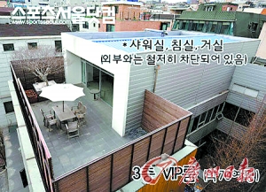 據(jù)職員透露,金某招待客人的場(chǎng)所一般是在企劃室一層的紅酒吧,不過(guò)有時(shí)還會(huì)用到3樓以及外部的空間。接受招待的一般是電視臺(tái)的導(dǎo)演和電影制作人以及政、經(jīng)界的人物,而參與招待的大部分是經(jīng)紀(jì)公司的女演員。據(jù)悉,3樓是由房間和陽(yáng)臺(tái)構(gòu)成,房間是按照酒店一樣裝修的,浴室和寢室都具備,房間和陽(yáng)臺(tái)是相連的。酒會(huì)和生日派對(duì)一般都在這里舉行!