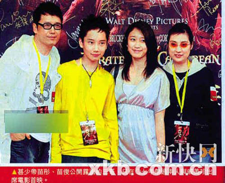 近年復(fù)出的苗僑偉(三哥)跟戚美珍,為養(yǎng)大一對(duì)寶貝兒女,早年不惜放棄演藝事業(yè),經(jīng)悉心教導(dǎo)下,現(xiàn)年18歲的苗彤和15歲的苗俊均很聽話,像足戚美珍的女兒苗彤更甚受男同學(xué)歡迎,日前記者便目擊被喻為“;ā钡乃B日來都有一名小眼男同學(xué)貼身護(hù)駕,似乎相當(dāng)受男同學(xué)歡迎。