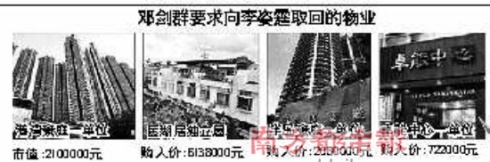 另外,有報道指,鄧劍群在向法院交待這些年交與李姿霆的多處物業(yè)時稱,當(dāng)初以李姿霆的名義購買物業(yè)只是為怕兩人戀情會因他登記成為業(yè)主而被揭發(fā),但并沒有打算將物業(yè)以饋贈形式轉(zhuǎn)讓給李姿霆,如關(guān)系終結(jié),她持有的業(yè)權(quán)將悉數(shù)歸還給鄧劍群。