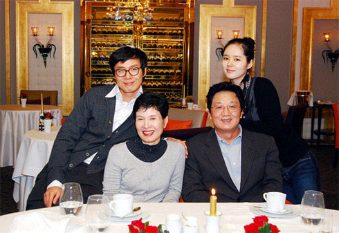 照片中,韓佳人親昵地倚著公公延圭真的肩膀,一家人顯得非常和睦,場面很感人。