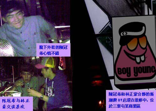 記者隨后跟出門(mén)口,卻不見(jiàn)陳冠希一行身影。而他們的奔馳座駕一直停在車(chē)位,約凌晨2時(shí)許,才見(jiàn)三名保衛(wèi)人員隨同之前陪著陳冠?瓷啼伒捻n國(guó)華裔富家林正豪出來(lái),而后打開(kāi)車(chē)門(mén),拿了什么東西,而后又回到酒吧。記者注意到,該富商一直有保衛(wèi)人員跟隨,而且當(dāng)晚一直陪同陳冠希,看來(lái)關(guān)系非同一般。此外,記者輾轉(zhuǎn)從酒吧大堂經(jīng)理處了解到,與陳冠希同行的林正豪乃韓國(guó)上流社會(huì)頗有影響力的華人企業(yè)林氏株會(huì)社貴公子,早年一直玩轉(zhuǎn)韓國(guó)時(shí)尚圈,近年也當(dāng)歌手出唱片,可謂是橫跨時(shí)裝和娛樂(lè)兩界,不僅擁有韓國(guó)頂尖潮流服裝品牌,還是韓國(guó)某娛樂(lè)公司的幕后老板,而當(dāng)晚夜店老板早就安排了陳冠希一行到來(lái)的保衛(wèi)工作。大堂經(jīng)理透露,這位韓國(guó)華裔富家林正豪也是他們老板的好朋友,此行除了陳冠希外,還有京城某地產(chǎn)商之女以及圈內(nèi)某著名女制片人之子,“身家都是上億的。”