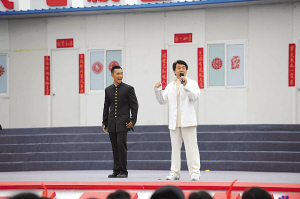 昨日早上8點(diǎn)半,“心連心”演出主會(huì)場(chǎng)的演出在綿竹最大的救災(zāi)板房安置區(qū)舉行。據(jù)悉,所有的演員昨天5點(diǎn)鐘起床化妝,再?gòu)牡玛?yáng)駐地趕到演出現(xiàn)場(chǎng)。而他們當(dāng)中的成龍前晚半夜12點(diǎn)才趕到四川;正在香港進(jìn)修CEO的趙本山更是專門趕回來(lái)。即使半夜到德陽(yáng),也要專門趕到綿竹現(xiàn)場(chǎng)彩排。前天下午,在“心連心”位于綿竹市二號(hào)立交橋板房區(qū)的主會(huì)場(chǎng),里里外外圍滿了前來(lái)觀看的鄉(xiāng)親。在板房搭建起來(lái)的簡(jiǎn)易舞臺(tái)上,演員們正在彩排。開場(chǎng)曲是央視24位主持人與4位歌手合唱的《三百六十五個(gè)祝!。