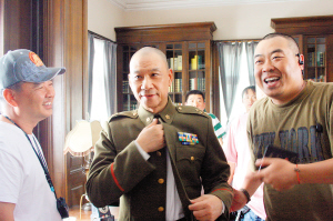 昨天上午,剛剛從上海趕到天津的王學(xué)圻直奔《建國(guó)大業(yè)》在河北區(qū)梁?jiǎn)⒊嫳掖罱ǖ钠瑘?chǎng),拍攝“李宗仁會(huì)見(jiàn)司徒雷登”一場(chǎng)戲,飲冰室內(nèi)部的閣樓布置成司徒雷登的辦公室。和導(dǎo)演黃建新做了簡(jiǎn)單的溝通后,王學(xué)圻和扮演司徒雷登的演員開始試拍。在監(jiān)視器中,身著國(guó)民黨軍裝的王學(xué)圻老成干練、威風(fēng)凜凜,這場(chǎng)戲是李宗仁以私人身份要求獲得杜魯門政府的支持,卻遭到了拒絕。王學(xué)圻表現(xiàn)得不卑不亢,將焦點(diǎn)轉(zhuǎn)移到了扮演司徒雷登的非職業(yè)演員身上,導(dǎo)演黃建新告訴記者,這位扮演司徒雷登的演員本是在中國(guó)發(fā)展的美國(guó)商人,一次偶然的機(jī)會(huì)讓他加盟劇組,到目前為止的表演令人很滿意。而在實(shí)力懸殊的對(duì)陣中,“司徒雷登”卻顯得有些緊張,有兩次還說(shuō)錯(cuò)了臺(tái)詞,稍加穩(wěn)定之后,最后一條終于通過(guò)。黃建新導(dǎo)演高興地告訴和王學(xué)圻擁抱一起的“司徒雷登”,“這是天津的記者,你們快拍一張合影,這樣你就上報(bào)紙啦!”