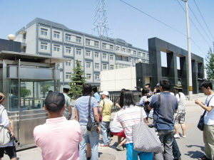 2日晚10時,在朝陽北路北京市公安局朝陽分局看守所和拘留所的大院門外的輔路上,已經(jīng)停滿了新聞記者的車輛,30余名記者手持照相機(jī)或攝像機(jī)已經(jīng)在門外苦苦等候。昨日早晨7時,陸續(xù)又有數(shù)名記者趕到朝陽看守所大門口參與蹲守。