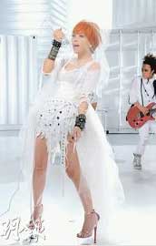 阿妹解釋因為心情興奮,進(jìn)食后又叫又跳所以反胃。她表示披上搖滾款式的婚紗最想嫁音樂漢子,她希望對日本X-Japan主唱Toshi說﹕“我要嫁給你!