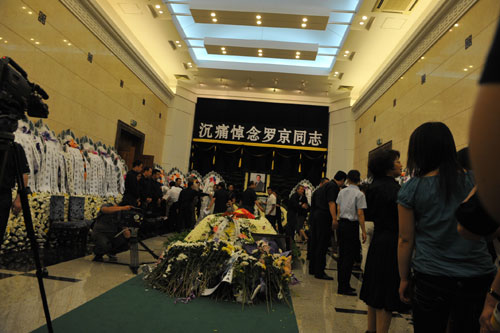 進入悼念的人井然有序,從正門進入,偏門出,速度迅快!霸蹅兙筒痪瞎,看一看羅老師就走。”現(xiàn)場工作人員反復(fù)叮嚀。