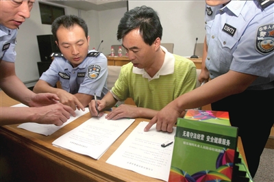 昨天,海淀田村一家?jiàn)蕵?lè)場(chǎng)所的負(fù)責(zé)人簽下禁毒承諾書(shū)。當(dāng)天,海淀分局通知轄區(qū)內(nèi)的20余家?jiàn)蕵?lè)場(chǎng)所的負(fù)責(zé)人召開(kāi)了禁毒宣傳會(huì),民警為娛樂(lè)場(chǎng)所負(fù)責(zé)人播放了自編的短片,對(duì)照短片教這些負(fù)責(zé)人辨認(rèn)各種毒品。最后,警方組織娛樂(lè)場(chǎng)所的負(fù)責(zé)人簽署了禁毒承諾書(shū)。記者張沫 穆奕攝