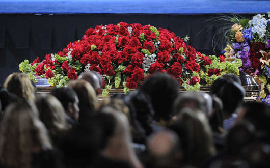 這場歷時兩個半小時的公眾追思會于當(dāng)?shù)貢r間7日上午十點(diǎn)(北京時間8日凌晨1點(diǎn))在洛杉磯斯臺普斯中心舉行,現(xiàn)場涌入1.1萬名靠抽簽取得的免費(fèi)入場券歌迷,包括瑪麗亞.凱莉、奎恩.拉蒂法、籃球巨星科比和魔術(shù)師約翰遜在內(nèi)的眾多重量級明星,都上臺回憶自己與杰克遜的往事。
