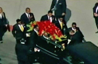在加州高速公路巡邏警車的開道下,部份通往森林草坪墓園(Forest Lawn Parks & Mortuaries)的高速公路路段一度短暫關(guān)閉,以協(xié)助家族成員的車隊(duì)不受上班尖峰時間塞車的影響。