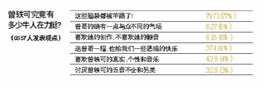同樣在開心網上,針對“曾軼可身后究竟有多少牛人在力挺?”的帖子,有10357人(截至昨日)投票表態(tài),結果有7971人選擇了“這些腦袋都被羊踢了”記者 齊帥 實習生 戴曼曼