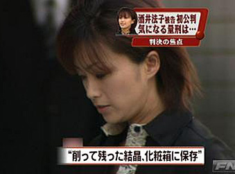 中新網(wǎng)10月26日電 被控違反《興奮劑取締法》持有、使用毒品的日本女星酒井法子(38歲,本名高相法子)首次公審26日在東京地方法院(審判長:村山浩昭)進(jìn)行。酒井在法庭上對(duì)起訴內(nèi)容供認(rèn)不諱。檢方求刑1年零6個(gè)月,判決計(jì)劃將于11月9日下達(dá)。