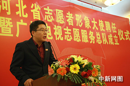 上午,“河北省志愿者形象大使聘任暨廣播電視志愿服務(wù)總隊(duì)成立儀式”在河北會(huì)堂隆重舉行。央視節(jié)目支持人劉建宏接受了共青團(tuán)河北省委頒發(fā)的給他的河北省“志愿者形象大使”聘書,并莊嚴(yán)宣誓致力于志愿服務(wù)事業(yè)。于文華因故未能到場(chǎng)。