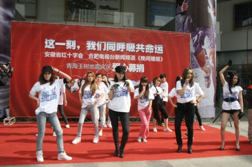 與選手們的想法不謀而合,主辦方粉絲網(wǎng)更無(wú)時(shí)無(wú)刻不在關(guān)注著玉樹(shù)。選手們?nèi)缭讣尤氲接砂不帐〖t十字會(huì)、合肥電視臺(tái)新聞?lì)l道《晚間播報(bào)》舉辦的“這一刻,我們同呼吸共命運(yùn)”青海玉樹(shù)地震災(zāi)區(qū)愛(ài)心募捐義演中。“我們希望通過(guò)這種方式告訴更多同胞,只要我們的心在一起,再大的災(zāi)難也能扛過(guò)去!币晃贿x手說(shuō)。